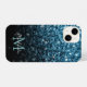 Couleurs d'été tendance girly chic bling boîtier téléphone : Monogram Personnalisez avec votre nom personnalisé. Belle parties scintillant bleue Bébé scintille. Belle parties scintillant brillantes bleu clair brillant girly scintillent avec l'ombre noire. Nous utilisons la photo de la parties scintillant mousseux bleu bébé!