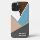 Contemporain beige taupe, marron foncé, gris, bleu turquoise et blanc blocs mosaïque art motif téléphone portable. Avec place pour customiser avec le nom, monogramme ou initiales de votre choix. Belle couverture moderne et cool pour le brancheur tendance et amateur d'art branché, amoureux de motifs artistiques qui veut protéger leur téléphone de la poussière et de la saleté, de l'usure et de la déchirure. Cette conception est disponible en coques de téléphones cellulaires Apple iPhone 6, 7 et 8 Plus, 10 ou X, XR, XS, 11, 12, 13 Mini, 14, 15 Plus et Pro Max. Montrez votre style, regardez à la mode, et sentez élégant avec un design unique sur un accessoire mobile de votre choix.