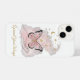 Carry a daily reminder of your strength and potential with this "Spread Your Wings" iPhone case. This beautiful design features a delicate pink butterfly soaring above a minimalist hand-drawn palm, set against a dreamy watercolor backdrop with celestial stars and moon accents.