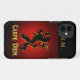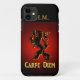 coque iphone "Carpe Diem" avec Lion noir et rouge. "Saisis le jour". Personnalisez ce coque avec votre nom ou vos initiales. Griffon mythologique sur arrière - plan rouge et noir.