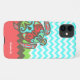 Coque iphone design réalisé en motif zigzag à la mode aquamarine et chevron blanc, avec des rayures de zigzag vert, marron et corail au fond. Les graphiques d'une tortue de mer d'inspiration aztèque faite en brun, aquamarine, vert et orange corail, ornent le côté gauche. Personnalisez le texte blanc en fonction de vos besoins. Excellent moyen de personnaliser votre téléphone avec un regard amusant que tout le monde vous posera. Choisissez le style iPhone sur lequel vous voulez cette conception.