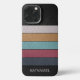 Classy, fun, contemporain ivoire gris, moutarde ocre jaune, turquoise vert turquoise, vintage rouge rose, et bleu ardoise foncé rétro chic rayures horizontales design motif sur un arrière - plan de texture en faux cuir. Avec place pour customiser ou personnaliser avec un nom, monogramme ou initiales de votre choix. Housse originale et cool élégante pour le branché branché branché branché et amateur de mode, look branché style motif qui veut protéger son téléphone contre la poussière et la saleté, l'usure et la déchirure. Ce design est disponible sur une variété de décoratifs, à la mode, artistique, tendance, unique moderne, et cool Apple iPhone 6, 7 et 8, 10 ou X, XR, XS, 11, 12, 13 Mini, 14, 15 Plus, et Pro Max coques de téléphone cellulaire. Montrez votre style, regardez à la mode, et sentez élégant avec un design unique sur un accessoire mobile de votre choix.