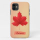 Feuille d'automne personnalisée avec une aquarelle colorée illustrant une feuille d'érable abstraite aux tons rouge et orange. Ce coque iphone féminin en feuille d'érable a une couleur arrière - plan personnalisable et est idéal pour les personnes qui aiment la saison d'automne.