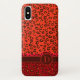 Un monogramme de style empreinte de léopard unique coque dans des tons rouges et chauds de l'automne. Personnalisez cet objet avec votre initiale. Voici l'exemple : D. Cliquez ici pour voir la gamme complète de coques iphone. Ce motif original et unique est conçu par Sarah Trett. www.sarahtrett.com