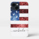 Personnalisez le faux coque iphone brillant avec votre nom. Drapeau américain en parties scintillant de faux brillants rouge et bleu. Nous utilisons des photos de parties scintillant étincelantes.