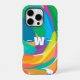 De grands arcs de couleur se croisent dans ce magnifique design d'art abstrait. Aqua, jaune, orange, vert et bleu mélangent harmonieusement et brillamment des éclats de couleur. Ajoutez votre initiale pour une conception monographique personnalisable.