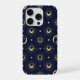 Coque iPhone Elegant Navy and Gold Celestial Moon & Sun Pattern
