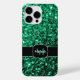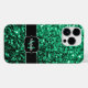 Personnalisez le faux coque iphone brillant avec votre initiale et votre nom. Belle girly glamour Smaragd vert émeraude parties scintillant brillant faux étincelles. Sophistiqué, éblouissant, chatoyant, vivant, luxuriant, riche, éclatant glamour vert émeraude. Nous utilisons la photo de parties scintillant étincelantes vertes!