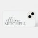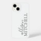 Étui minimaliste avec nom combinant calligraphie script et police serif chic.
