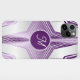 Elégante femme monogrammed violet rayures géométriques motif étui téléphonique. Un grand cadeau personnalisé pour elle. Changer le script initial, acheter maintenant et la surprendre.