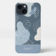 Le design de style boho moderne est orné d'un arrière - plan de formes organiques dans des tons bleus poussiéreux, ornés d'illustrations en feuilles de monstère tropicale. Personnalisez avec un nom ou un monogramme le long du bas.
