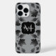 Coque iPhone Feuille gris brillant motif d'automne Monogram