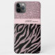 Coque iPhone Fille rose Nom personnalisé Zebra Imprimer Rose Or