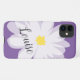 Fleur vectorielle daisy violet Zazzle Basic iPhone 11 Coque. modèle moderne de design floral avec typographie élégante. Une des couvertures téléphoniques les moins chères de Zazzle. Une idée cadeau d'anniversaire unique pour les amis et la famille.