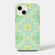 Coque iPhone Fleurs de jardin rétro en vert et jaune