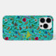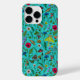 Coque iPhone Fleurs sauvages et papillons de nuit sur turquoise