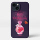 Pink Love Potion Bouteille Heureuse Sainte-Valentin iPhone 13 Coque a un style de jeu de dessin animé moderne avec un vase en verre, à l'intérieur est un liquide rose qui a été ouvert avec un étiquette le montrant comme une potion d'amour. La fumée rose apparaît, les coeurs s’envolent et les mots "Bonne Saint Valentin" émergeront.