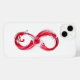 Infinity symbole of continuous stream of red pouring into glass glass glass on white background.