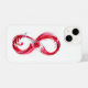 Infinity symbole of continuous stream of red pouring into glass glass glass on white background.