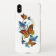 Symbol infinity made of gold, decorated with realistic orange and blue on a white background. Butterfly morpho and Monarch. Design with butterflies.