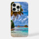 Beau ciel d'été bleu vif sur un océan bleu turquoise aqua et palmiers verts et feuillage sur une plage hawaïenne. Un design hipster original, élégant et funky a été créé pour les amoureux de la faune et de la flore, Hawaï, des plages et du sable, des vacances, et les voyages dans des endroits exotiques et des pays du monde. Belle couverture moderne et cool pour le brancheur tendance et amateur d'art branché, amoureux de motifs artistiques qui veut protéger leur téléphone de la poussière et de la saleté, de l'usure et de la déchirure. Cette conception est disponible pour les coques de téléphones portables Apple iPhone 6, 7, 8, 10 ou X, XR, XS, 11, 12, 13 Mini 14, 15 Plus et Pro Max. Montrez votre style, regardez à la mode, et sentez élégant avec un design unique sur un accessoire mobile de votre choix.