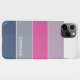 Gardez votre nouvel appareil électronique à l'abri des coups de poing et des égratignures avec ce boîtier de téléphone cellulaire protecteur, réalisé avec un design motif élégant et chic classique contemporain, bleu foncé, gris, violet et de couleur rose vif. Avec de la place pour customiser avec un nom de votre choix. Cette conception est disponible pour les coques de téléphones cellulaires Apple iPhone 6, 7, 8, 10 ou X, XR, XS, 11, 12, 13 Mini, 14, 15 Plus et Pro Max. Montrez votre style, regardez à la mode, et sentez élégant avec un design unique sur un accessoire mobile de votre choix.