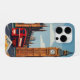 Take your favorite country and its traditions with you all day. An illustrated phone case design showing London and it's famous Big Ben, red bus and traditional fish and chips food.