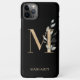 Lettre M monogramme floral. Lettre M en texture brun doré accentué de feuilles composés d'aquarelle verte, fleurs de fleurs et poussière d'or. Personnalisez avec le nom dans la police correspondante.