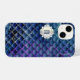 Boîtes de téléphone design moderne pour iPhone. Belles échelles de sirène arc-en-ciel bleu et violet brillant avec monogramme d'argent irisé personnalisé. Entrez votre initiale pour la personnaliser ! Choisissez l'option de boîtier mince ou robuste, et vérifiez le modèle de téléphone pour la meilleure prise avant de commander.
