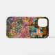 iPhone 12 Mini Coque avec de beaux iris roses et violets dans un jardin chatoyant sous de grands arbres. Un grand cadeau Monet pour les amateurs d'impressionnisme et d'art français. Impressionnisme nature paisible avec de belles fleurs et paysage pittoresque.