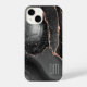 Ce joli boîtier de téléphone présente un design abstrait dramatique en parties scintillant d'or noir et rose. Le confetti étoilé minuscule donne un effet de scintillement, avec votre monogramme en gris pâle contre gris foncé et noir au fond. Classique !