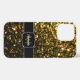 Coque iPhone Monogramme doré foncé jaune faux parties scintilla