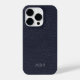 Un étui de téléphone en faux cuir bleu de minuit avec espace pour vos initiales.