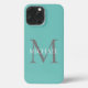 Coque iPhone Monogramme personnalisé et nom Turquoise clair