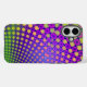 Cette coque a un design avec des motifs décoratifs branchés. Les couleurs principales sont le violet, le vert et le jaune. Ce produit peut être customisé en ajoutant du texte.
