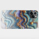 Coque iPhone Motif d'art en marbre doré bleu Turquoise foncé