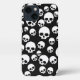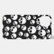 Un motif de crânes aléatoires dans un schéma gothique de couleurs noir et blanc.