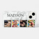 Créez votre propre étui de 4 photo-collage personnalisé avec vos images personnalisées et votre nom sur un élégant arrière - plan en marbre blanc élégant.