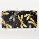 Motif sans couture avec or, bijoux, libellules brillantes avec ailes détaillées et pétillantes sur arrière - plan noir. libellule d'or.