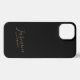 Étui de téléphone Black Gold Feminine Script Nom. Personnalisez facilement ce boîtier de téléphone moderne et élégant avec votre nom de script manuscrit personnalisé.