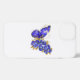 Bijoux, bleu, saphir, papillon aux fleurs pétillantes avec aile décorée de bleu, fleurs précieuses avec feuilles d'or sur arrière - plan blanc.