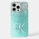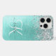Personnalisez facilement ce design branché de boîtier de téléphone chic avec une jolie parties scintillant brillante en argent sur un arrière - plan métallique brossé turquoise..