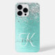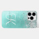 Personnalisez facilement ce design branché de boîtier de téléphone chic avec une jolie parties scintillant brillante en argent sur un arrière - plan métallique brossé turquoise.