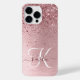 Personnalisez facilement ce design branché de boîtier de téléphone chic avec une jolie parties scintillant brillante rose vif sur un arrière - plan métallique brossé rose vif.