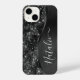 Personnalisez facilement ce boîtier de téléphone à motif de parties scintillant en métal brossé noir et glamour avec votre propre nom personnalisé.