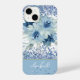 Coque iPhone Parties scintillant Personnalisée Blue Floral Nom
