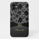 La dentelle noire élégante avec le diamant celtique de noeud de ceinture et d'or de mode bouclent le coque iphone personnalisé par décor. Une dentelle florale vintage classique dans le noir avec outre de l'arrière - plan noir. Introduisez dedans votre nom à l'invite pour lui faire le vôtre.
