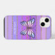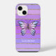 Coque iPhone Pink or violet papillon rayures filles nom