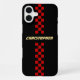 Coque iPhone Red Black À damiers Racing Drapeau Or Monogrammé
