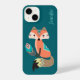 Coque iPhone Renard de la tribu Boho turquoise avec la plume